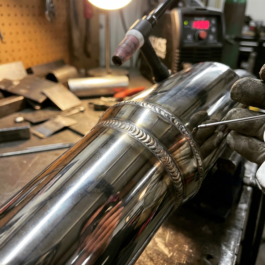 304 Kalite paslanmaz krom boru işçiliği. Downpipe, Düz Boru ve TIG kaynağı ile yüksek performanslı, estetik egzoz hatları.